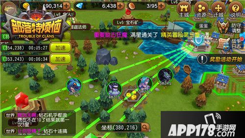 在游戏,每位达到20级的领主都能开疆拓土建设自己的小王国,领主的队伍等级数=可拥有的占地数。因此刚进入游戏就要一边疯狂的冒险闯关刷副本,一边根据等级占领土地收取税金。