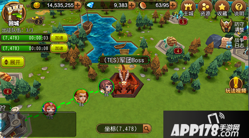 玩家向军团Boss派出尽量多的队伍,这里有个限制每个英雄只能攻打一次军团Boss,但是可以派出多支队伍,一起进攻,如下图派一支队伍和直接派出三支队伍。战斗结束后在战争日志里查询战斗结果,可以看到所有队伍的战斗过程。