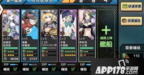 Ø快速补给: 对上阵的全部舰船进行快速补给,可在编队界面、出征准备界面点击”快速补给“进行操作。