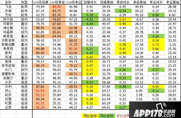 【威奇塔】100级因为基础值较高,回避也超越了【鸟海】跟【高雄】,婚也行,成长不低