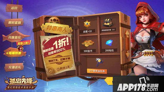 本次更新后一周内,“每周特惠”活动将持续为玩家带来重磅惊喜。在这里,玩家可以购买战星、英雄能量宝箱、金币、钻石和赛季抽奖券,一折抢购,九倍回报,让英雄养成更轻松。