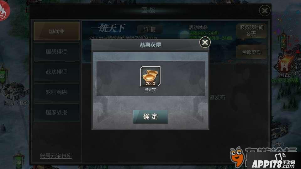 另外,完成国战任务还可以获得大量元宝,可以购买更多自己需要的资源。