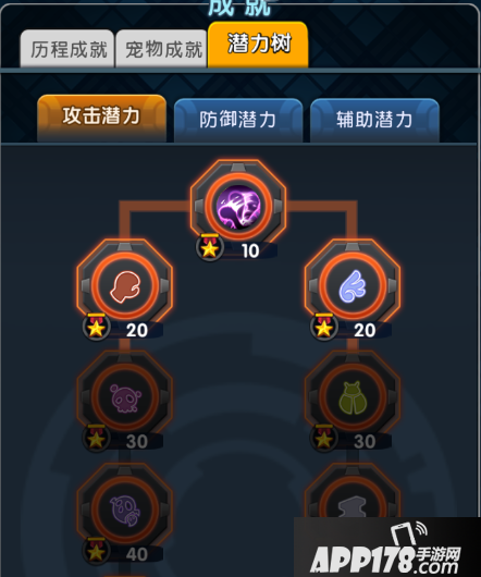 潜力树又分别有攻击潜力、防御潜力和辅助潜力三种,攻击潜力主要增加宠物的攻击属性,防御潜力则是增加宠物的防御属性,辅助潜力则是可以给角色在游戏中进行相应的操作时获得额外的效果,训练师们可以根据自己想要的效果消耗潜力进行
