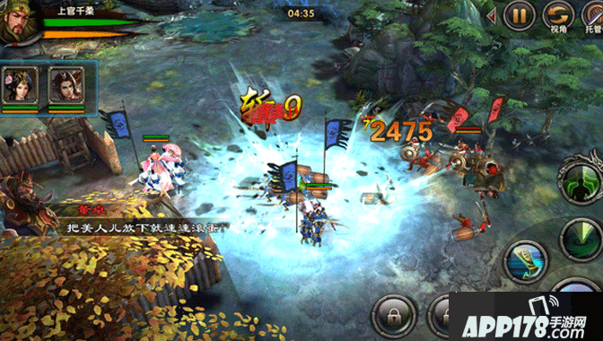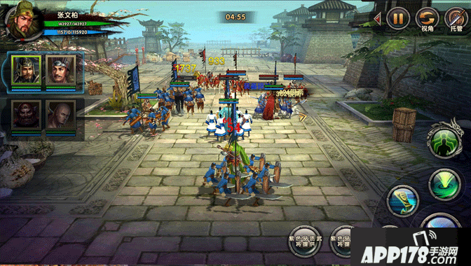 游戏的核心战斗为动作策略类战斗,爽快战斗无延迟,超强的打击感,速度感。用户在战场中可以自由操作自己的主将军团进行移动、攻击和释放技能,其余4个武将将会根据AI设定自动战斗,合理的搭配武将及武将技能的释放,可以起到相辅相成的效果。