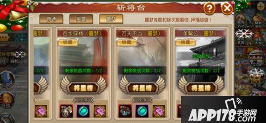 《关云长》手游在玩法上非常的多元化,狭路相逢、你争我夺、攻城略地、龙争虎斗、斩将台、长坂坡、练兵场、竞技场等等,各种惊险刺激的PK都能在游戏中体验到。现在的“天英降世”版本中,斩将台开启了噩梦模式,相较于以往的普通模式和英雄模式,难度直线上升,当然奖励也更加丰厚了。