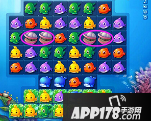 过关要点:优先让蓝鱼达到数量要求,再尽量让贝壳吐珍珠,尽量在海藻上进行消除就可以过关啦!