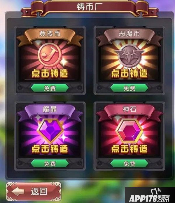 竞技币、恶魔币、魔晶、神石、巅峰币都是游戏中常用的货币,很多珍贵的英雄碎片和装备都需要通过这些货币,在相应的商店中购买才能够获得。而铸币厂就是花费少量的钻石,铸造这些货币。