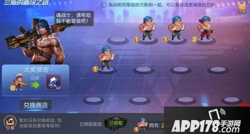 诶嘿,8级战士是本次兰斯晋级之路的新玩法啦~大大们需要完成各种任务来获取1级兰斯,并点击出阵让兰斯上场。当场上有两只1级兰斯的时候,大大们就可以拖动他到另一个兰斯身上,就能够合成一只2级兰斯啦!