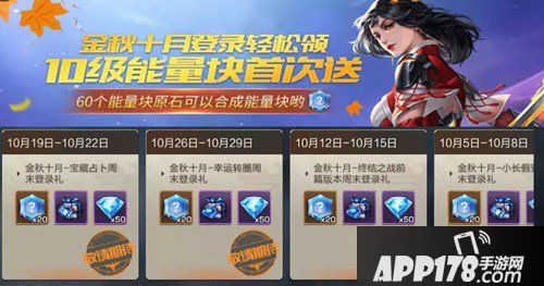 金秋十月,登录轻松领超级福利!10级能量块在等着你,大大们可别忘记领取哦~