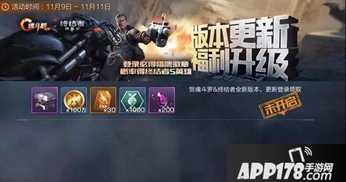 11月9日更新后,大大们即可在活动界面领取版本更新福利。其中的终结者大礼包在背包内打开后,有机会直接获取S级英雄终结者!保底也可获取猎鹰徽章,免费抽英雄!