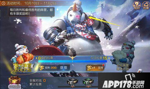 不仅有每日奖励,每当大大们投票数 达到10/20/30/40票的时候,都会获得相应钻石奖励,另外在大大们投票达到50票后,还可以领取终极大奖:100钻军团红包*1+雪人顽熊皮肤激活卡*1+英雄礼盒*2!