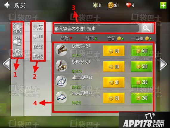 标红3:搜索物品名称,如果知道物品名称的话直接搜索就可以了。