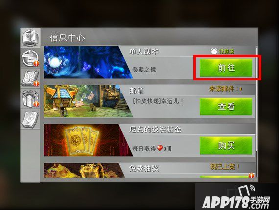 进入游戏后,在游戏右上方找到信息中心按钮。