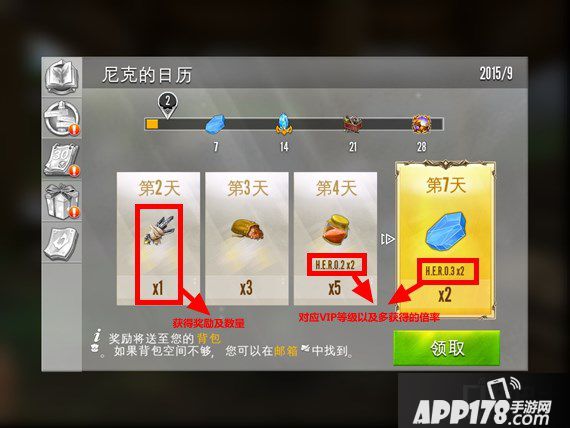 第三项是签到系统,每日何以获取一顶的奖励。