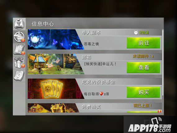 首先每次进入游戏时,都会自动跳转到每日任务的界面。在游戏中,称之为信息中心。