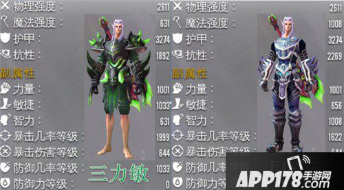 说明:三力敏与三力智物理强度相同。力智比力敏多了377点魔法强度(约高40%)