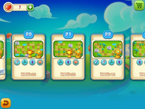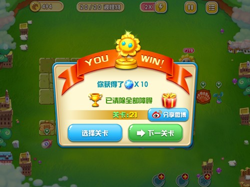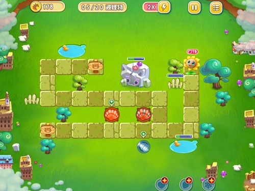 过关策略:首先要先在靠近十字路口处建造一根火焰贝壳塔,并加以升级,前面几波的攻势就能够再次积累一根火焰贝壳塔。沿着横线不断地摆放即可,在打击怪物的同时顺手将周边的障碍物一并清除。等到第10波的时候,再建造其他防御塔来清理剩余的障碍物。