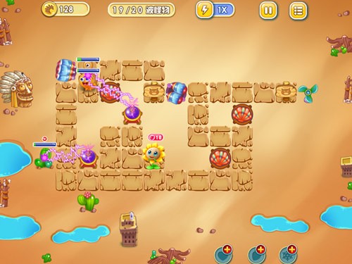 前期可先在左上角处建造一根激光射线塔并升至顶级,后面有多余的金币就建造一根火焰贝壳塔,两者的结合就能够顶住前期很多波的攻势。右侧则是建议在上下两处位置建造两根火焰贝壳塔并进行升级。在清理障碍物的同时也会获得防御塔助战,特别是左侧的防御塔会较多。所以右侧的地带应多建造一些防御塔,最后一波会同时在两个入口处出现怪物,此时可以根据战况随时售卖掉无用的防御塔,在后面的位置建造新的防御塔。
