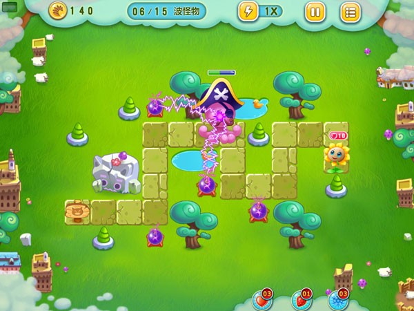 蒙牛真果粒《花儿与少年》官方手游是一款策略型的塔防游戏,游戏画面清新可爱,攻击怪物的音效Q萌搞怪,操作简单易上手,玩家只要一只手指轻点屏幕设置炮塔就可以消灭怪物,随时随地都能享受《花儿与少年》官方手游的超萌乐趣。游戏中,除了花儿和多个可爱的怪物Boss等萌系元素外,还加入了保卫花儿的剧情,玩家要努力消除怪物和途中的障碍来确保花儿不受侵犯,更增添了玩家的游戏使命感。