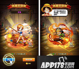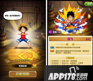 建立角色后,就可以得到第一张卡牌【路飞】(蓝卡),不用在意他是蓝卡出身,游戏中可以通过进阶把他培养到橙色的。他绝对是一个值得全程培养并且作为主力培养的对象。