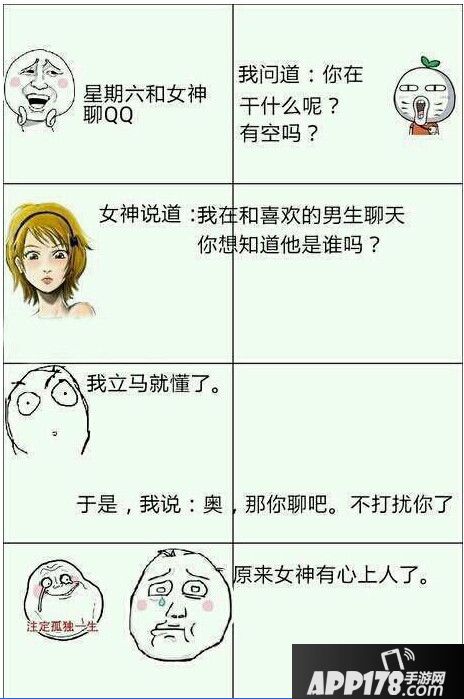 “高中的时候暗恋了妹子3年,结果高考后妹子说她喜欢班里一个姓吴的男生,我那个心啊,当时就碎了一地,只好祝她幸福。”