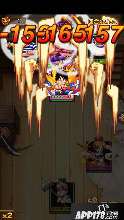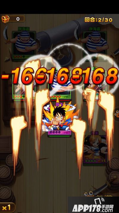 提到平面卡牌,估计玩家们的第一印象莫过于平淡无奇的卡片相撞。本作中为了增强卡牌战斗时的表现力,针对每个角色的技能招式都做出对应的技能特效。比如路飞的橡胶散弹枪,重重拳影霸气十足;而娜美的天候棒下,电闪雷鸣同样不可小觑。虽然缺少角色的动作代入,但华丽的效果着实为游戏增色不少。