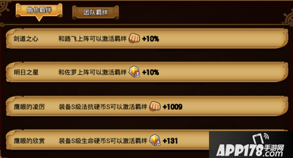 1、剑道之心:和路飞同时上阵时可以增加10%的物理攻击。