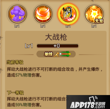 技能介绍:单线范围,挥动大战抢进行组合攻击,并产生爆炸,造成部分物理伤害。