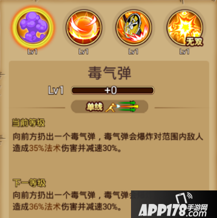 技能介绍:单线范围,向前方扔出一个毒气弹,毒气弹会爆炸,对范围内敌人造成法术伤害,并减速30%。