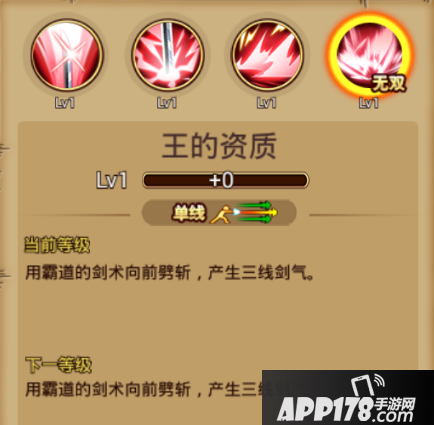 技能介绍:单线范围,在剑伤缠绕霸气让武器变长,自身增加buff,可使普通攻击变成三线攻击。