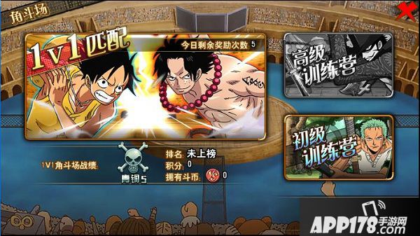 通关冒险副本2-11“巴基追逐战”后开启激战街完成角斗场教程即可进行1V1匹配,每次都可以选择三个人物出战,按照顺序出场一个人物战败后,下个人物才能登场,击败所有敌人才能获得最终胜利。