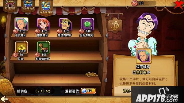 点击打开激战街界面中的百货大楼。百货大楼中包括道具商店、竞技场商店、角斗场商店、玩具商店和联盟商店等。可以通过不同的货币购买相对应的商店道具,三军未动粮草先行,伟大航路征途中,困难重重,快进点货补充以备不时之需吧!