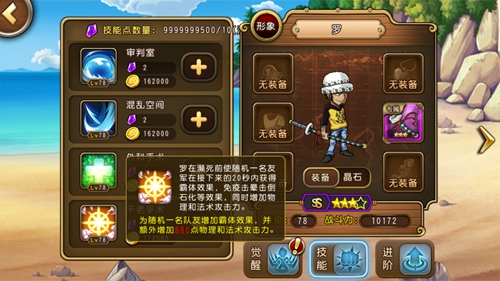 每当罗指尖向上,冷酷说道:“room”的时候,敌人的死期就不远了。作为手术果实能力者,罗可以在自己创造的room空间里随意切割对方的身体,这一能力在游戏中也得到了充分体验。《航海王 启航》中罗就拥有“审判室”、“混乱空间”、“外科手术”以及在漫画中都还未展现过的超强技能“不老手术”,从名字就可以推测,这在游戏里应该是效果极佳的治疗之术。