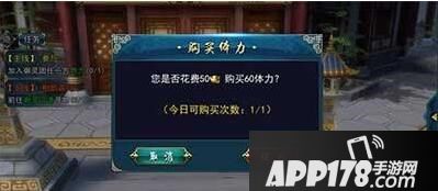玩家们可以点击体力值附近“+”的符号,然后系统就会自动弹出用元宝购买体力的页面了,普通玩家每天只可以购买1次。VIP玩家随着VIP等级提升,购买体力的次数也会提升。