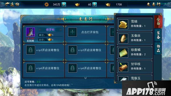 游戏内交易系统是游戏一大特色,交易行内玩家可以将自己打到不需要的装备进行寄售,寄售物品每个玩家可以寄售三件,vip等你越高可寄售的物品越多,玩家寄售所出售的物品卖出后获得的元宝会通过邮件发送给玩家,另外寄售的物品玩家下线后也可继续出售,所有物品上架展示周期为3天,三天未卖出的物品也会通过邮件发送给寄售者。