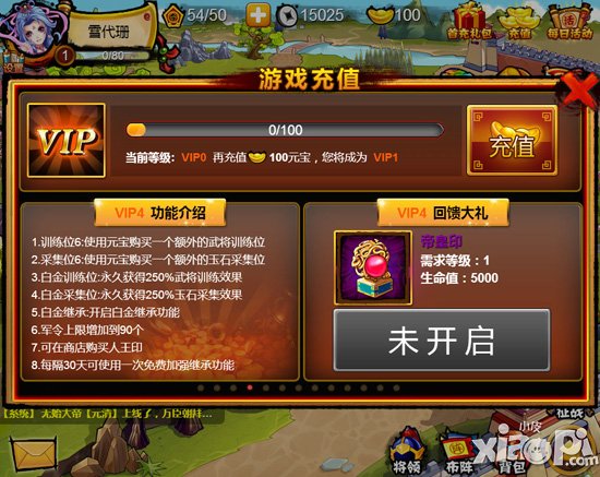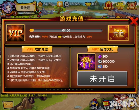 1、至尊训练位:永久获得400%武将训练效果