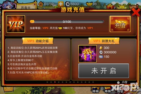 3、钻石训练位:永久获得300%武将训练效果