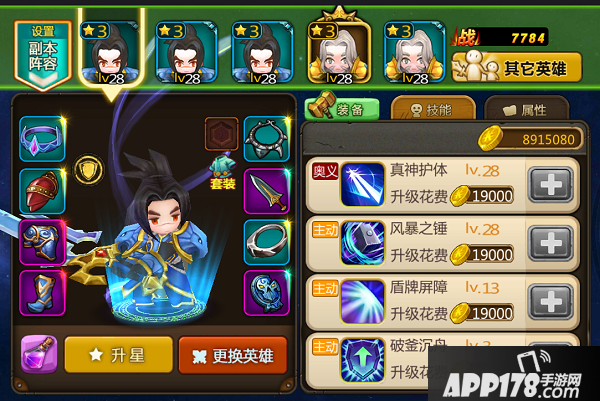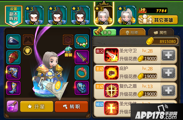 全盾队是由防御骑士*2+防御战士*3组成的,为了可以使用所有技能,等级均为28级,为了防止上次五奶买萌的惨剧,本次特意(东拼西凑)装备了部分套装。