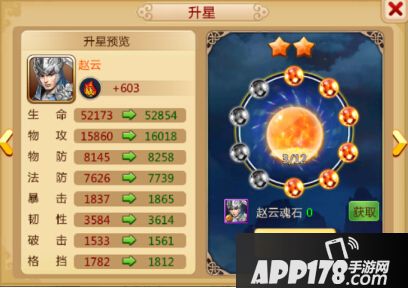 其实武将主要的战力还是靠升星,没事多打打赵云的橙怪,获取魂石,武将的星级越高,战斗力就会越强。