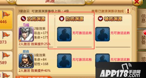 点击相对应的武将渊源。可以看见激活所需要的武将