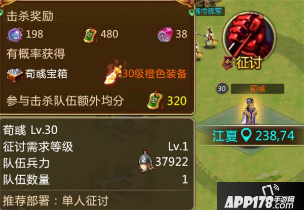 22级开启,每天有5次机会对其他玩家进行掠夺。成功掠夺的话可以获得600~1400的战功(视对手等级而定),这数量在前期来说是非常可观的,而且难度不大,强烈推荐大家每天都要完成。