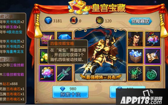皇宫宝藏中也可以抽取到4级技能跟技能兑换石。