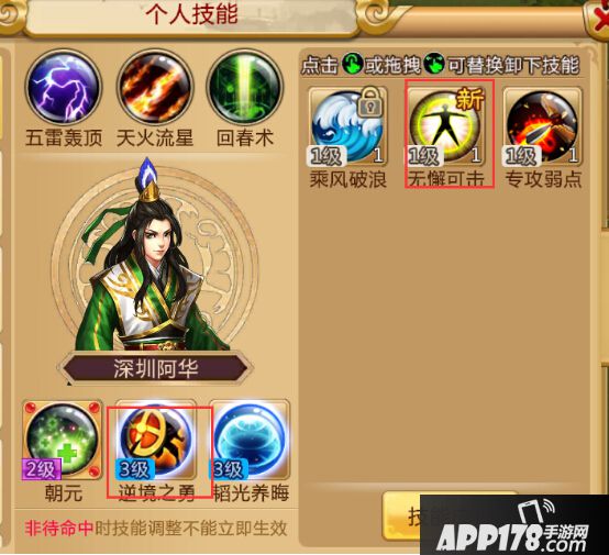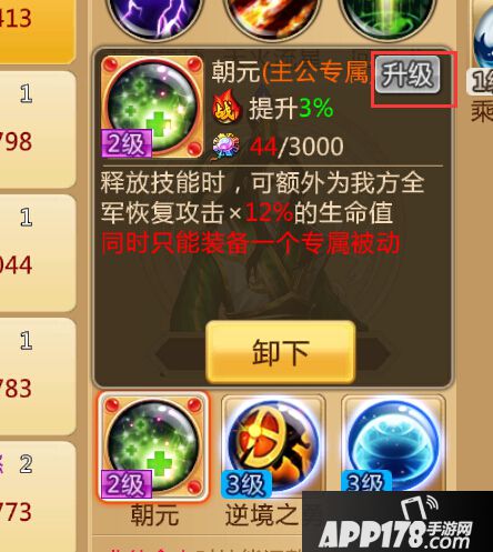 主公跟武将都有自己的专属技能。专属技能也可以升级。分为5个档次,效果逐级增加。