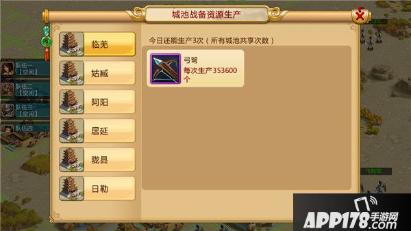 另外我们攻打城池后,每日有3次机会在城池里生产材料,记得别忘记这种免费的好事哦。
