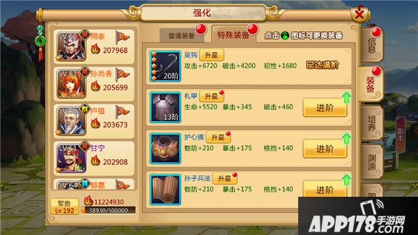 总的来说,特殊装备培养是将领特有的,培养得当的话,后期将领的强度其实不会差主公太多,因此大家可以优先培养。