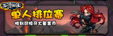 《互撸英雄》单人排位分为青铜、白银、黄金、白金、钻石、王者6个段位。每个组别又分为5个组别,如“白银Ⅰ、白银Ⅱ、白银Ⅲ、白银Ⅳ、白银Ⅴ”每个组别之间相差一百积分,战斗胜利后会增加十分,失败则会扣除十分。