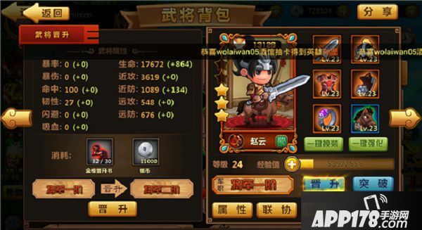 值得一提的是,其中用于升级的晋升书可以通过PVE副本、PVP玩法,以及商城等途经获得,并且官职系统的定位是全民型,玩家只要每日坚持在线,即可轻松升级武将。