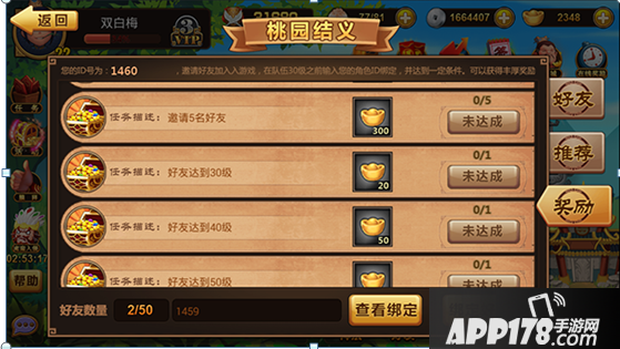 邀请好友数,即【填写你游戏ID】选择绑定好友的数量。满足相应数量即可领取对应元宝。