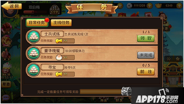 根据任务内容进行游戏,满足任务条件即可领取相应的任务奖励,能够更加快速的升级和提高哟~