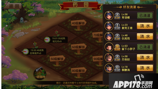 好友灌浇则是一个互动环节,如果你给好友灌浇好友的种子就会加快成长时间,同样好友对你的菜地进行灌浇也可加快成长时间。